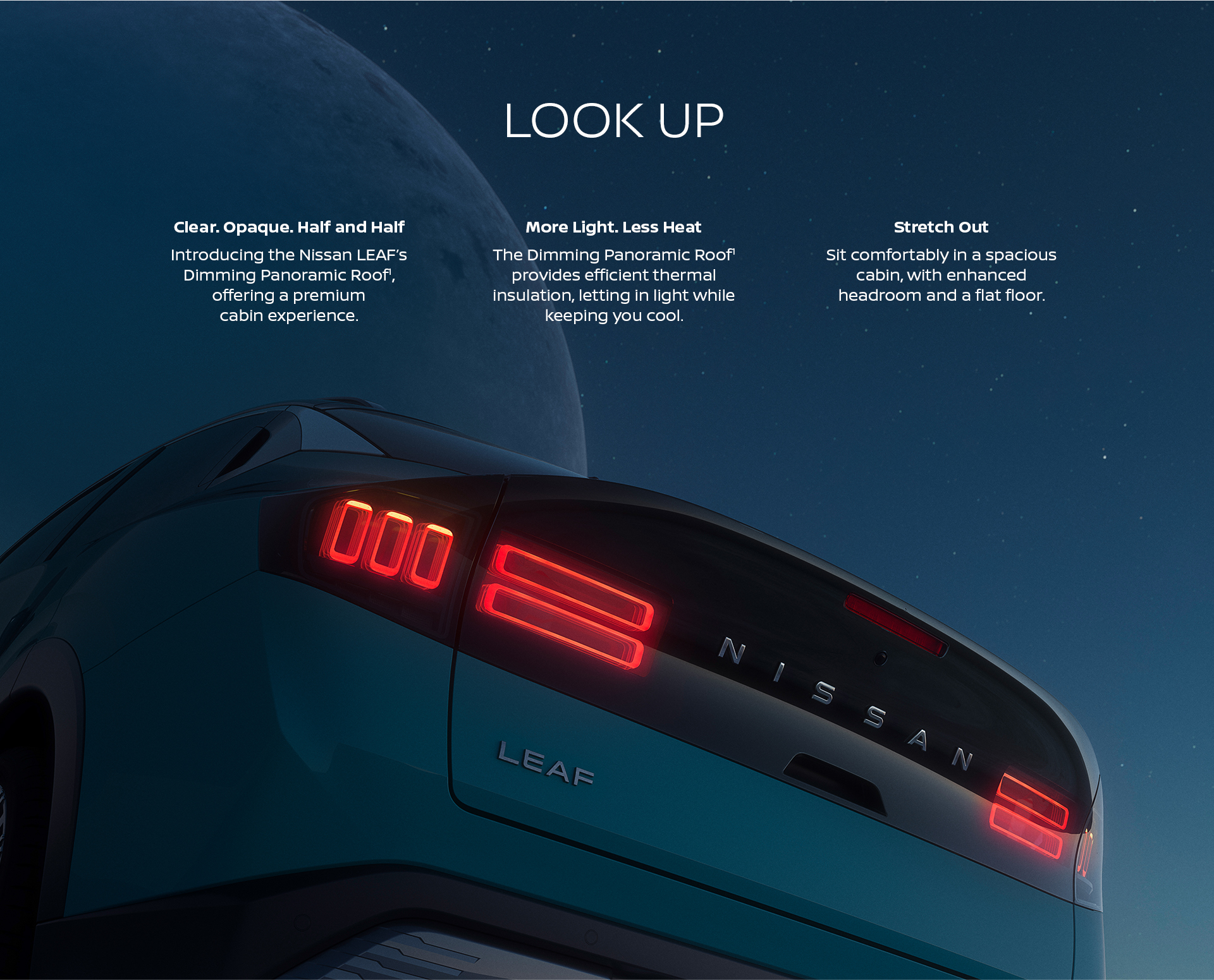 Engineered and built right here in the UK, the All-New Nissan LEAF has an impressive range and a Dimming Panoramic Roof, so you can see more of what's out there.